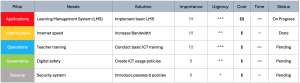 To ensure that the ICT transition plan stays on track, schools need a Progress Report Table. This table helps schools prioritize tasks by evaluating: